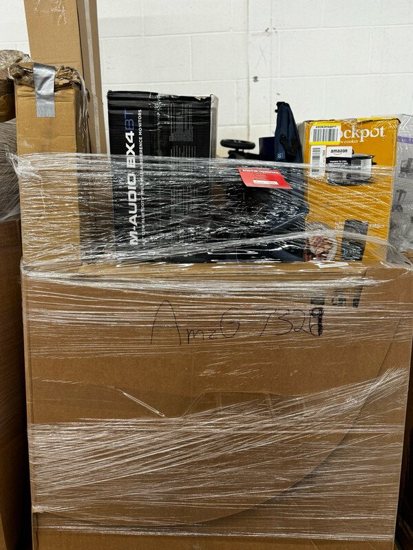 Pallet of liquidated miscellaneous amazon returned merchandise ranging from assorted kitchenware, baby items, electronics, small gadgets, tools, Home goods, & more. Nothing is guaranteed as the pallet is sold AS IS, there are no returns, exchanges, refunds or warranty.