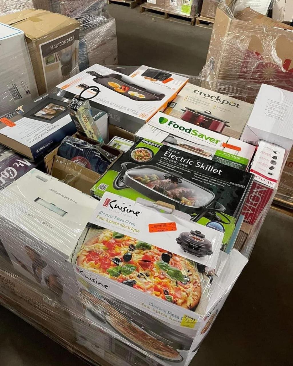 Unboxing these pallets reveals a treasure trove of innovative and high-quality kitchen appliances, ready to bring efficiency and delight into home kitchens. Each pallet represents an opportunity to discover valuable and highly desired household tools, all conveniently packaged and ready for distribution or personal use.