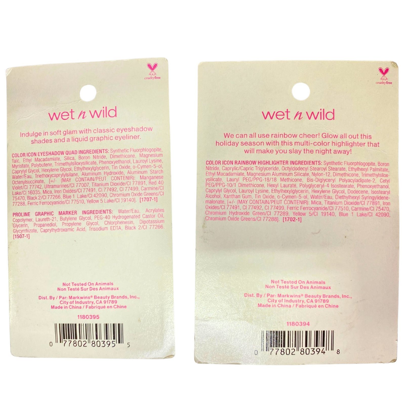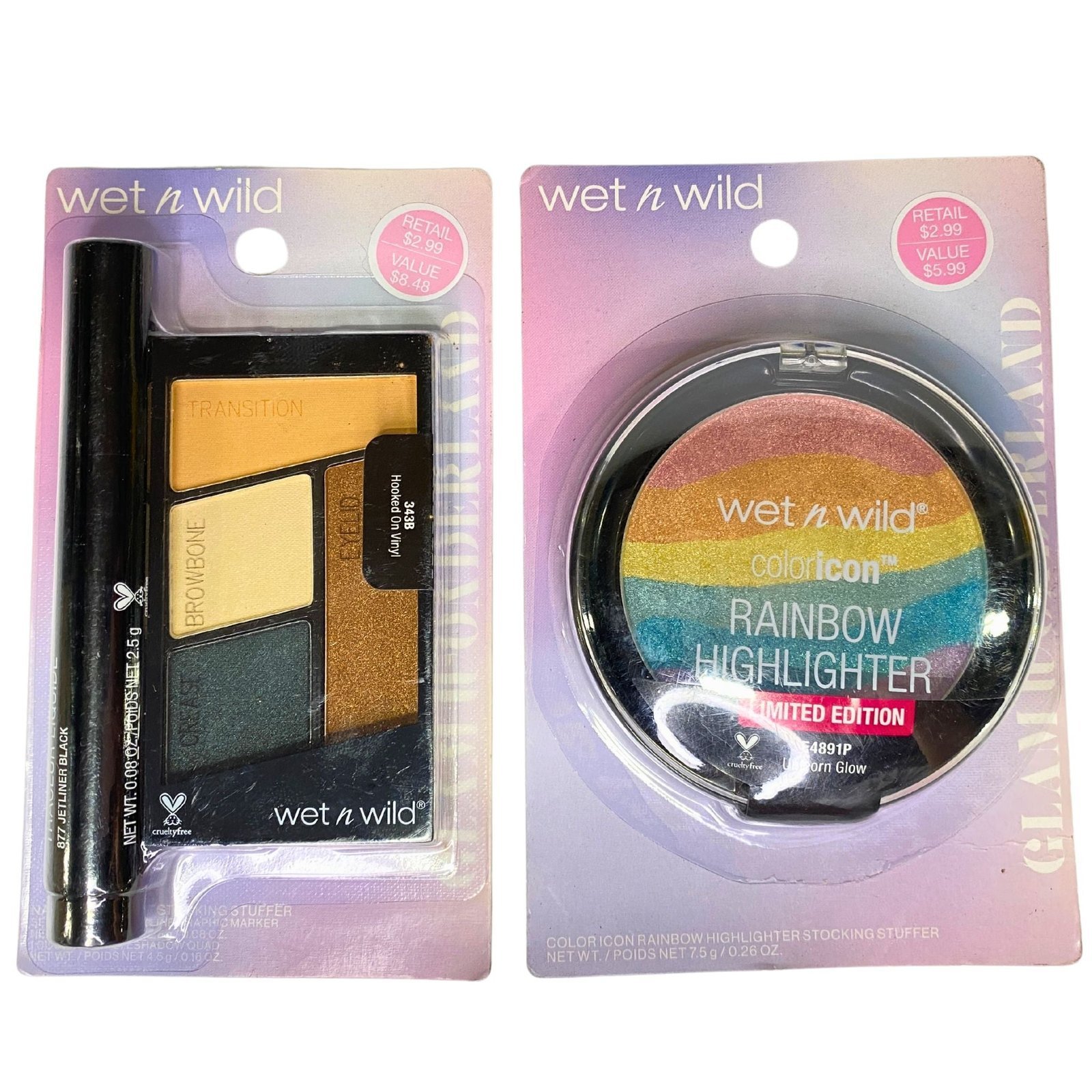 - Includes rainbow highlighters, quad shadows, and liquid liners